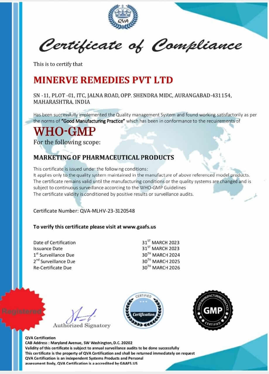 In Minerve Remedies “Quality is a Journey, not a Goal” and in journey up-till now “Quality has become our Guiding Principle.”